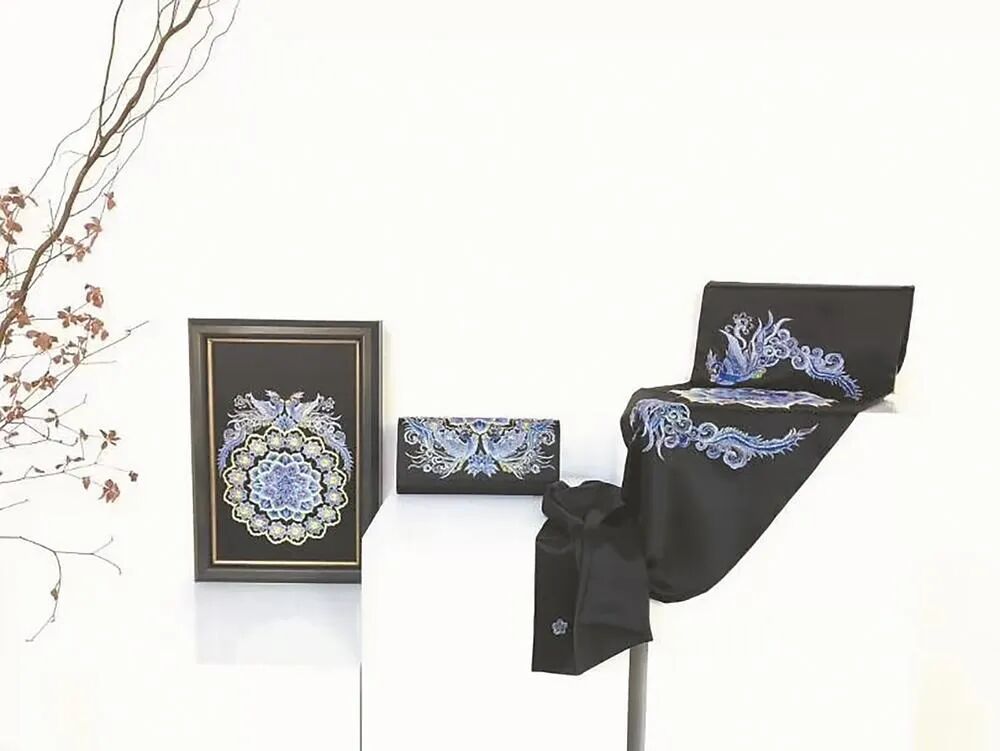 金馨在北京郊区建立了京绣主题民宿,向家乡母校捐献绣品,为后世留下京绣珍品。金馨规划的纹样,把京绣从博物馆带到了时髦界,登上了特仑苏牛奶包装、微信付出红包礼盒、梦龙冰激凌包装、星巴克星享卡、LEE牛仔外套……她呼吁:不同次元,美美与共。