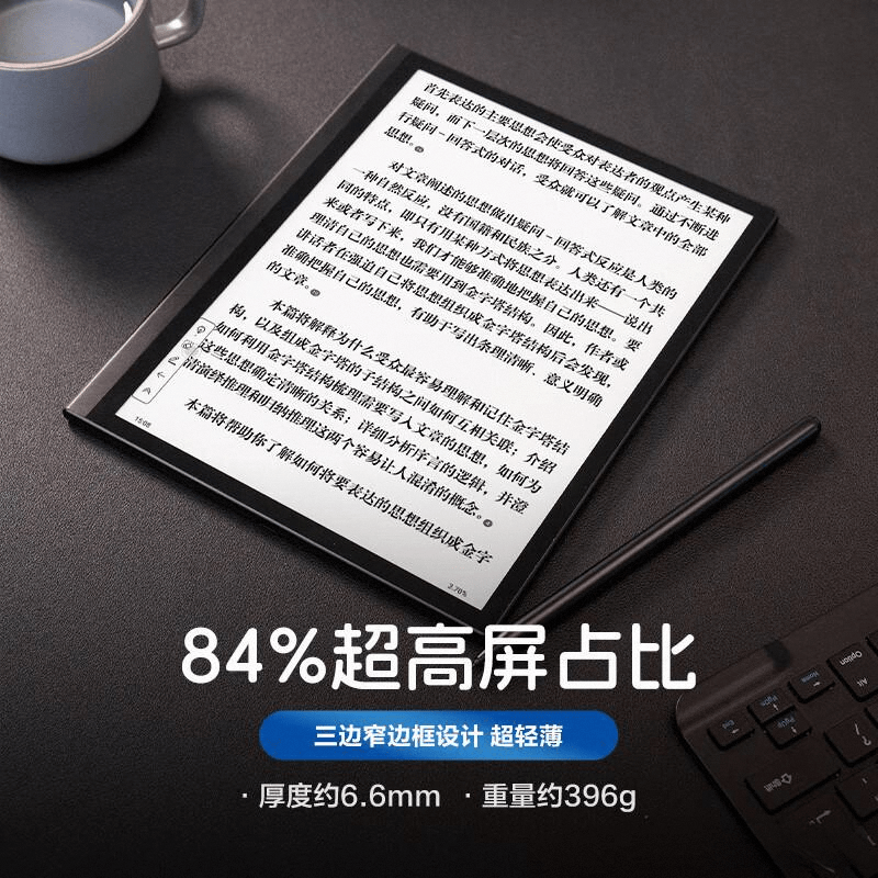 采用了Carta1200墨水屏技能,弛禁对比度高达118%,文字图片显现更明晰,屏幕占比高达84%,看着就舒畅。